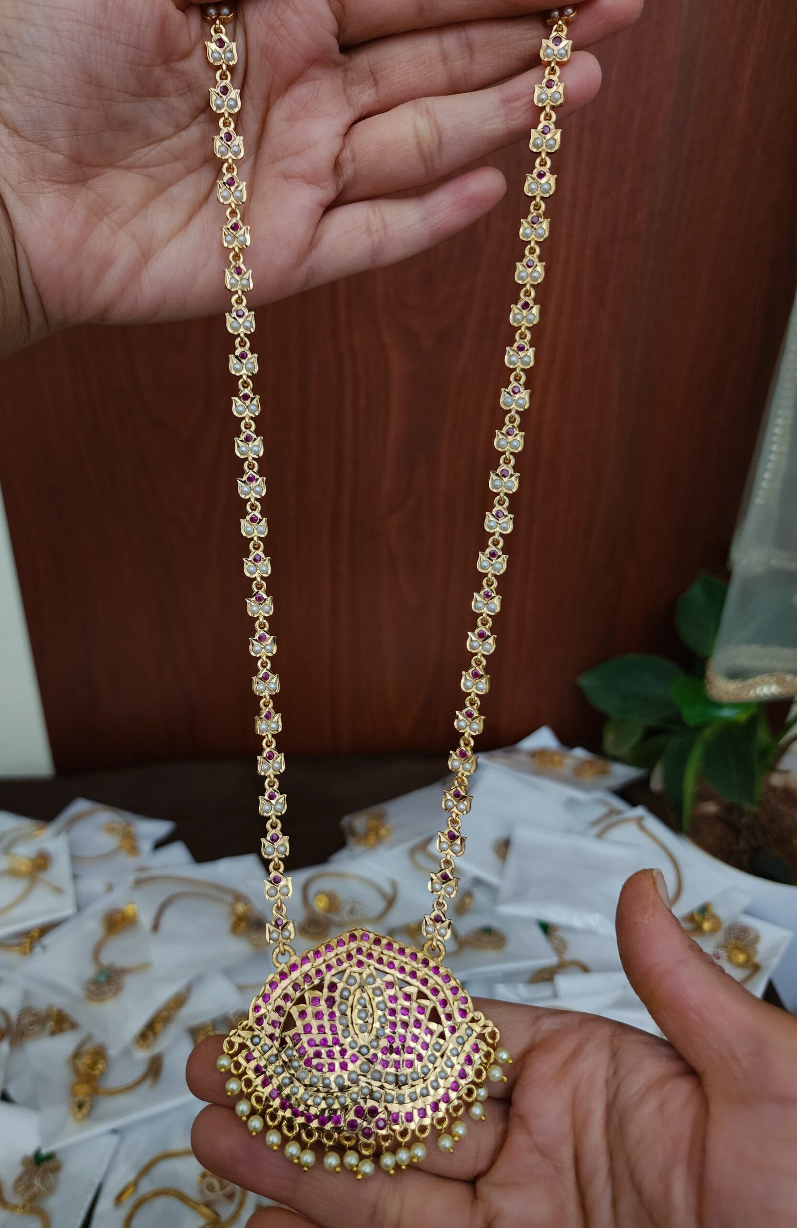 Traditional Impon Ruby White Stone gold replica chain