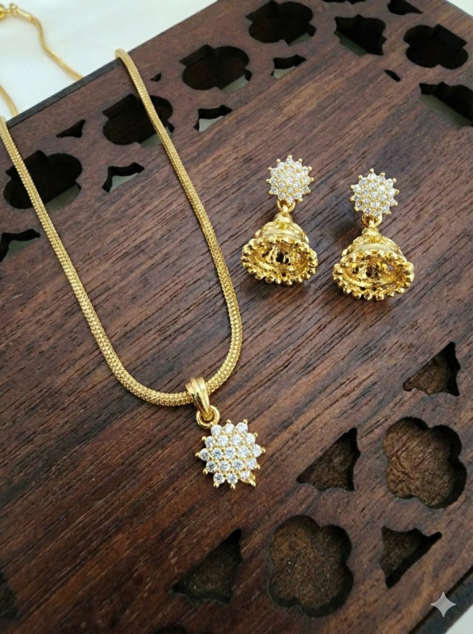 CZ Dollar Chain with Ad Jhumki ( 2 in 1 Earring)Jewellery